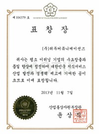 Ministry of Trade, Industry and Energy Award Certificate