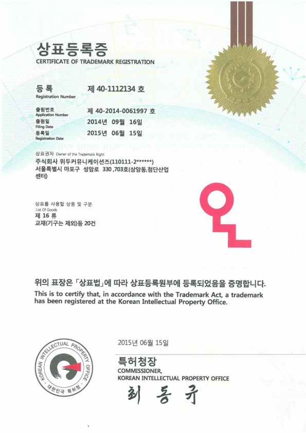[Korea/Trademark] OLL 16 Class 페이지 정보 작성자 WeDu 댓글 0건 조회 6,646회 작성일 19-06-04 10:46 본문 2015-06-15 Trademark 40-1112134 16 Class List Previous[Korea/Trademark] OLL 09 Class 19.06.04 Next[Korea/Trademark] OLL 41 Class 19.06.04